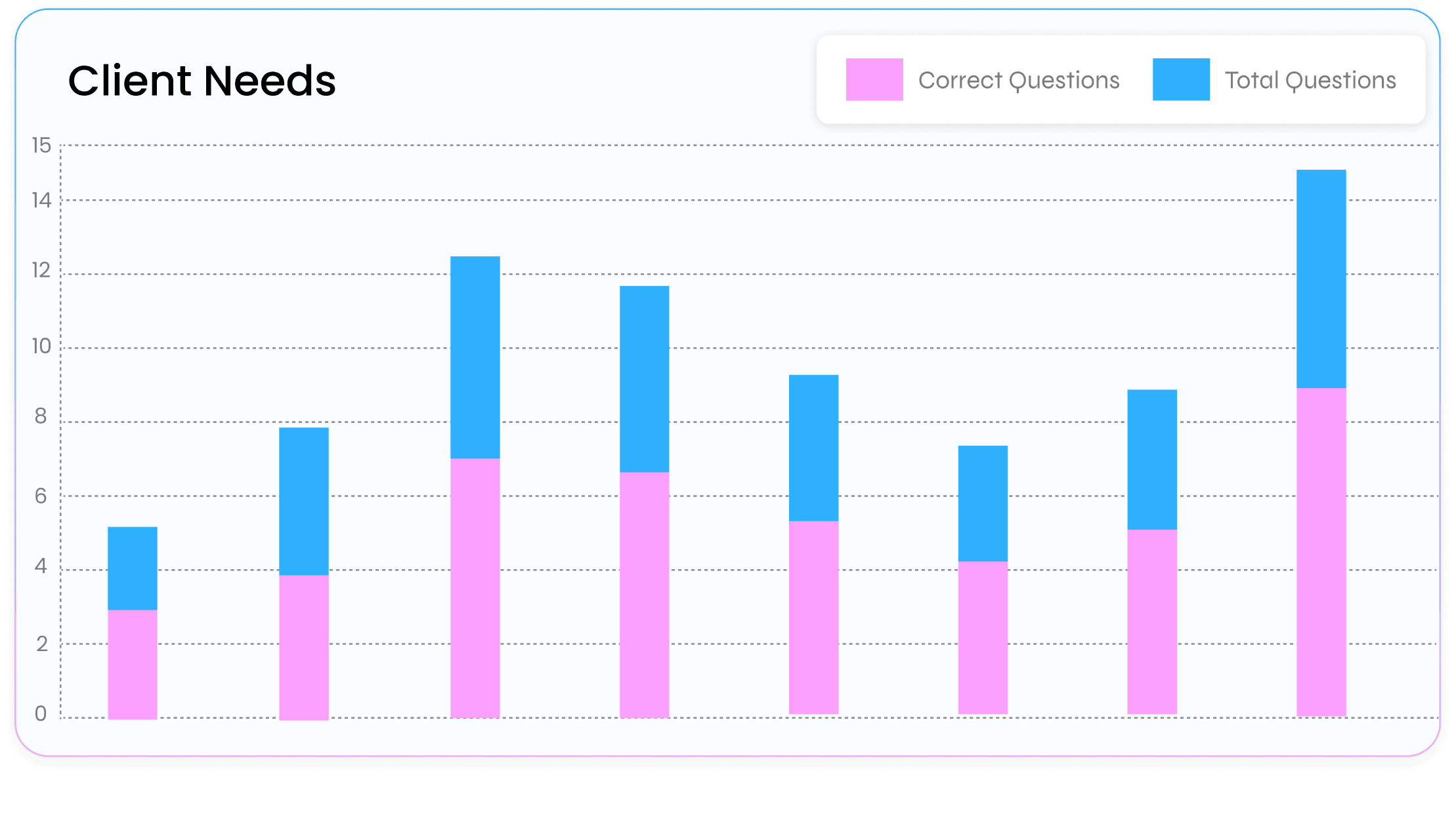 Monitor exam readiness in real time with a simple, color-coded gauge that reflects current performance levels and total preparation progress.